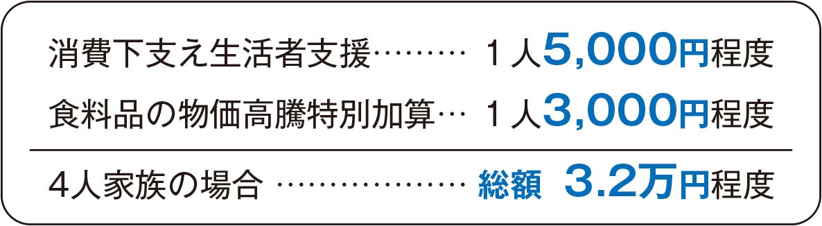 食料品灯油や水道代、中小事業者の賃上げ、各種低所得者向けなどの支援を強化。